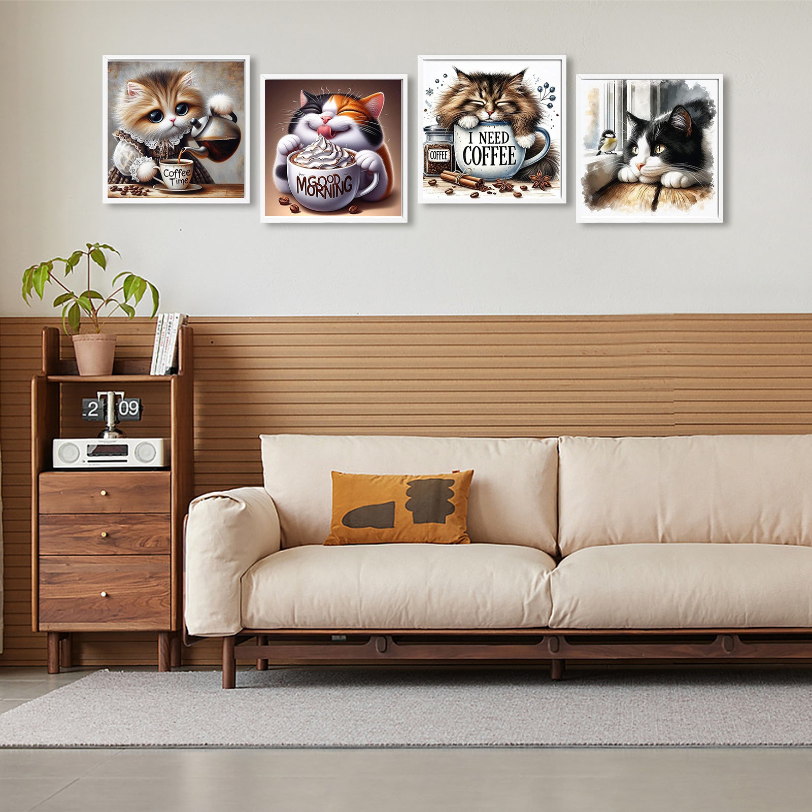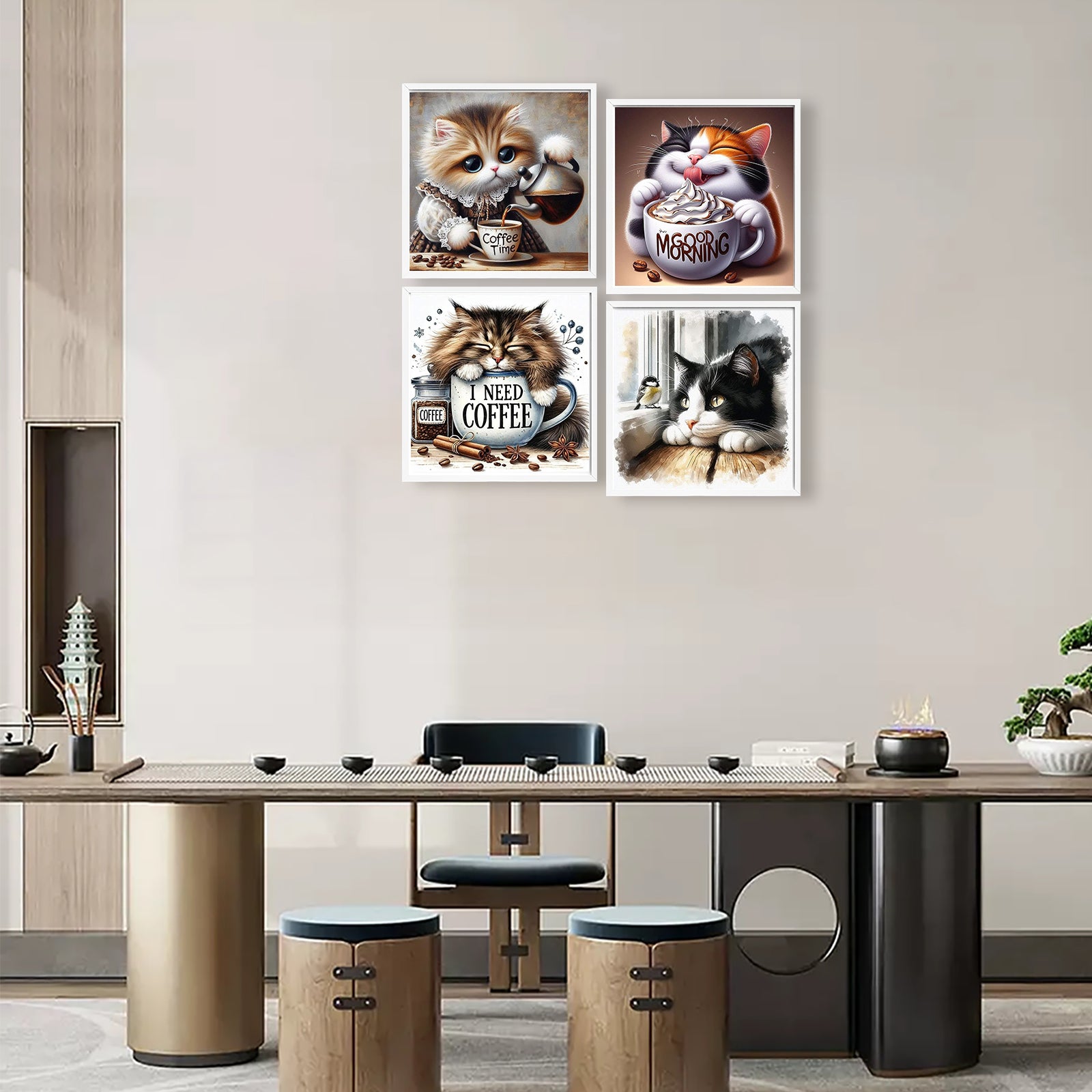 Cats And Coffee - Full Round Drill Diamond Painting 30*30CM