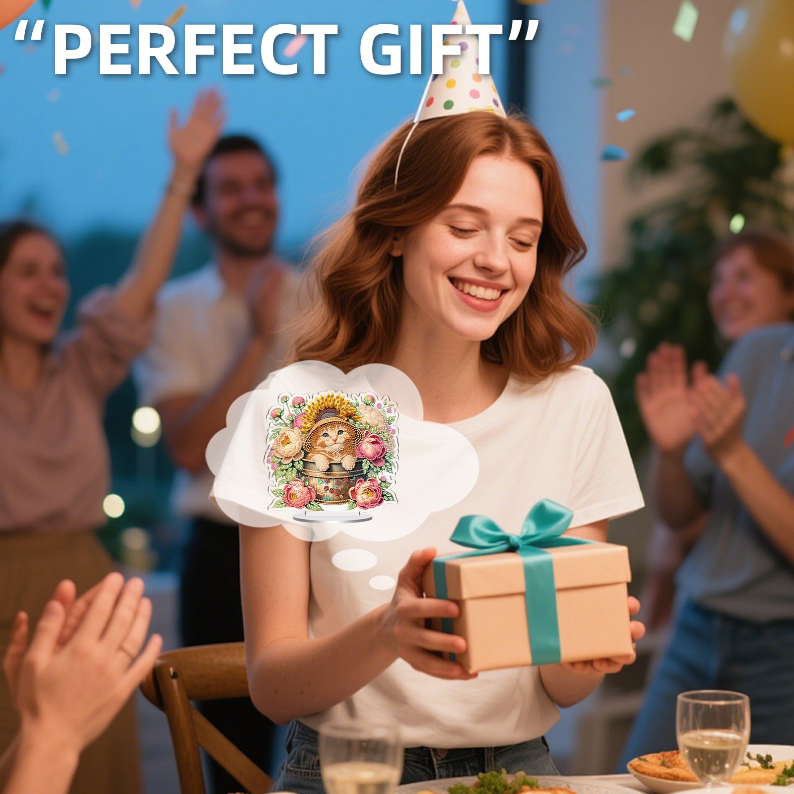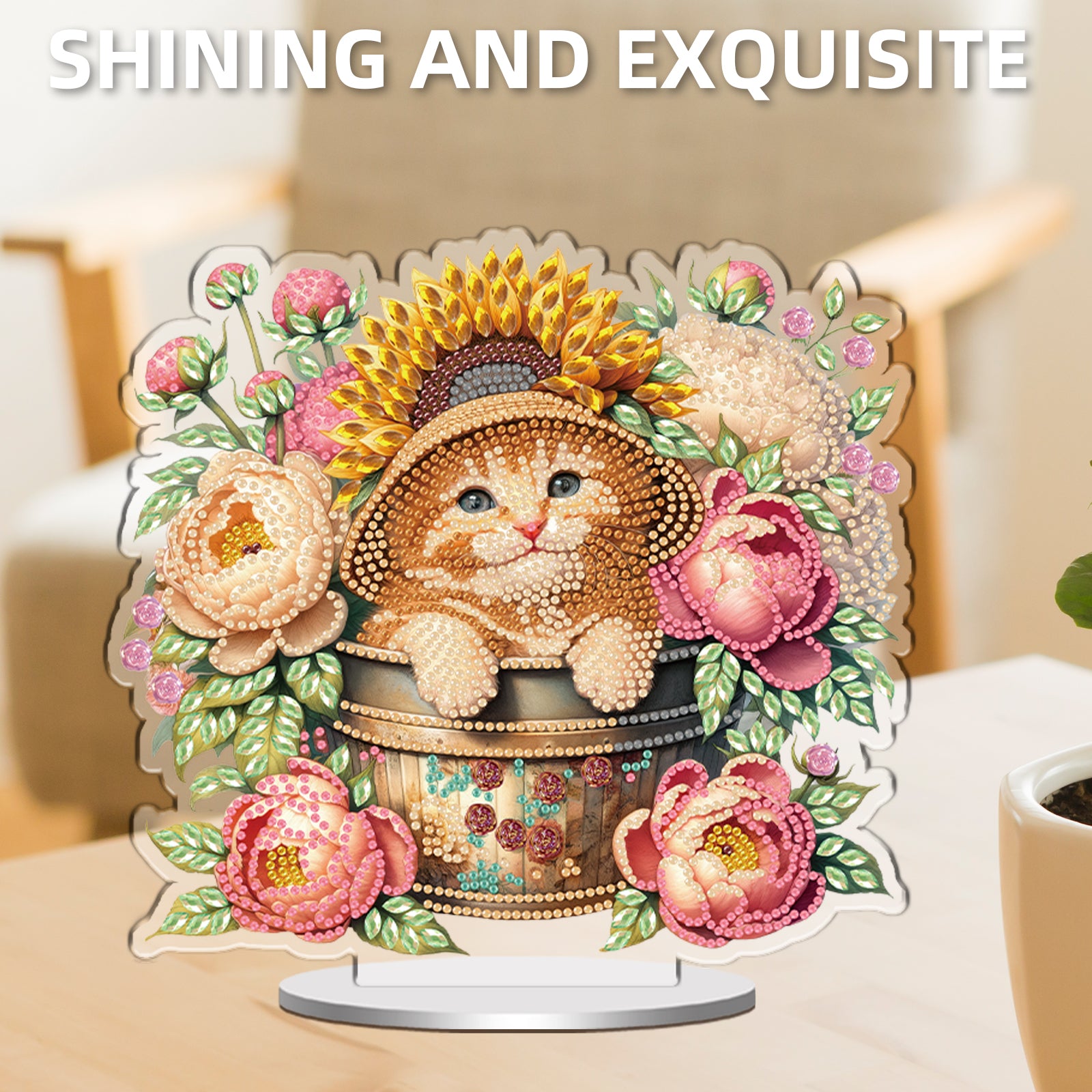 Cats and Flowers DIY 2D Flat Acrylic Special Shaped Diamond Art Kits 22x25cm