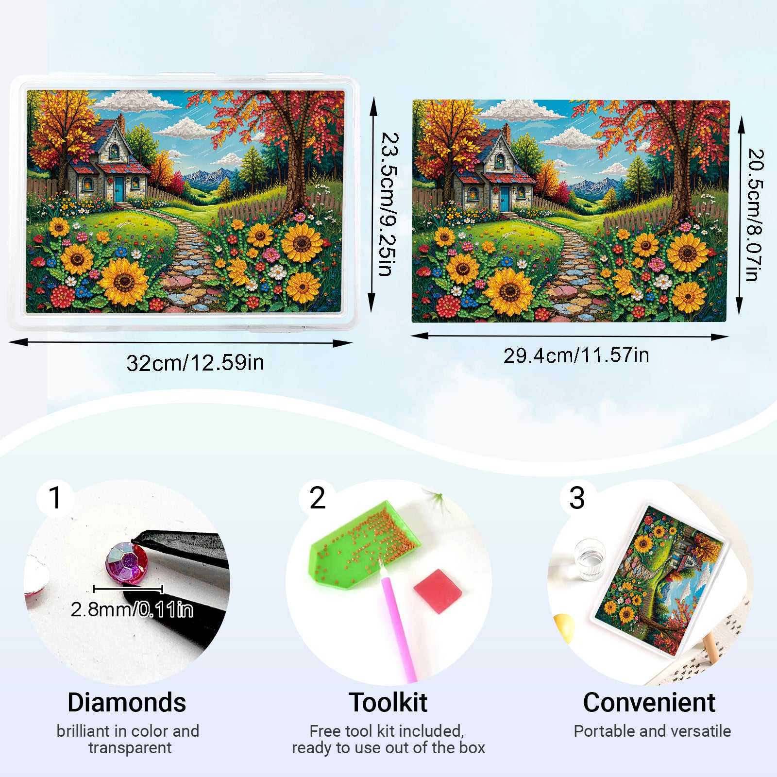 1. Open the packaging and check if all the diamond painting tools are included;