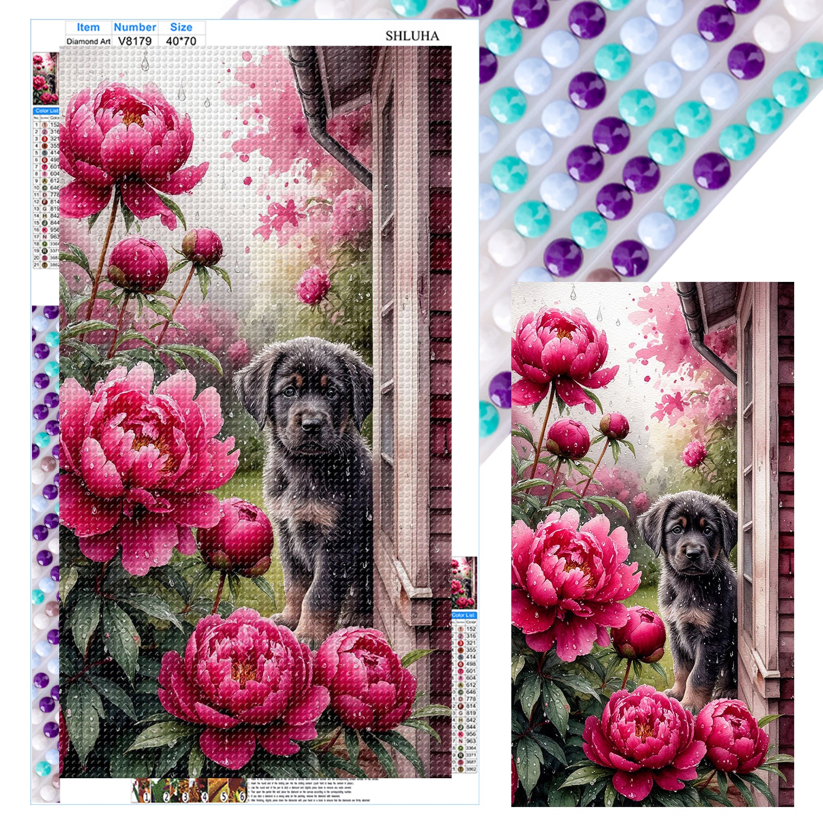Dogs And Flowers - Full Round Drill Diamond Painting 40*70CM