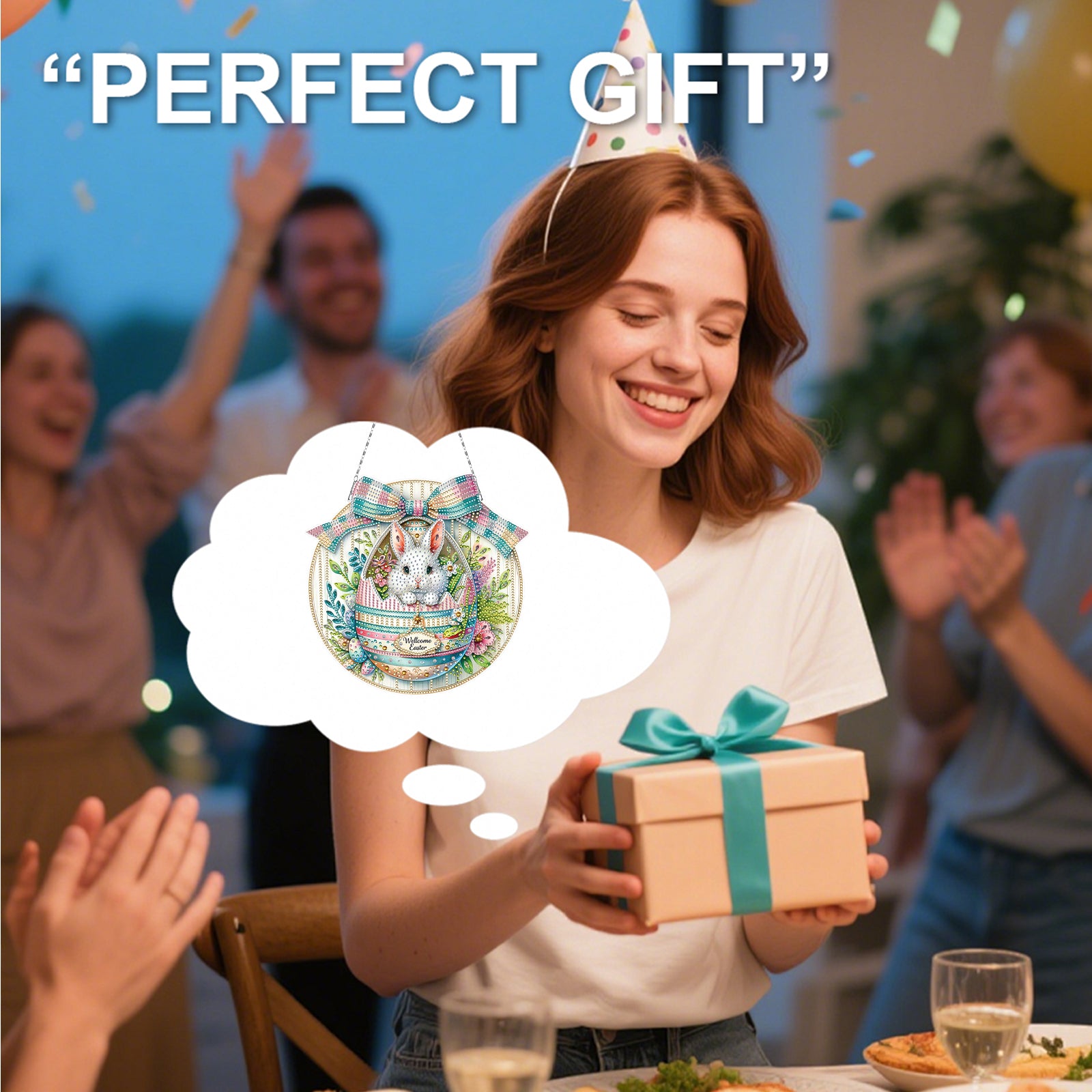 Easter Egg Bunny DIY 2D Flat Acrylic Double Sided Diamond Painting Kits Pendant