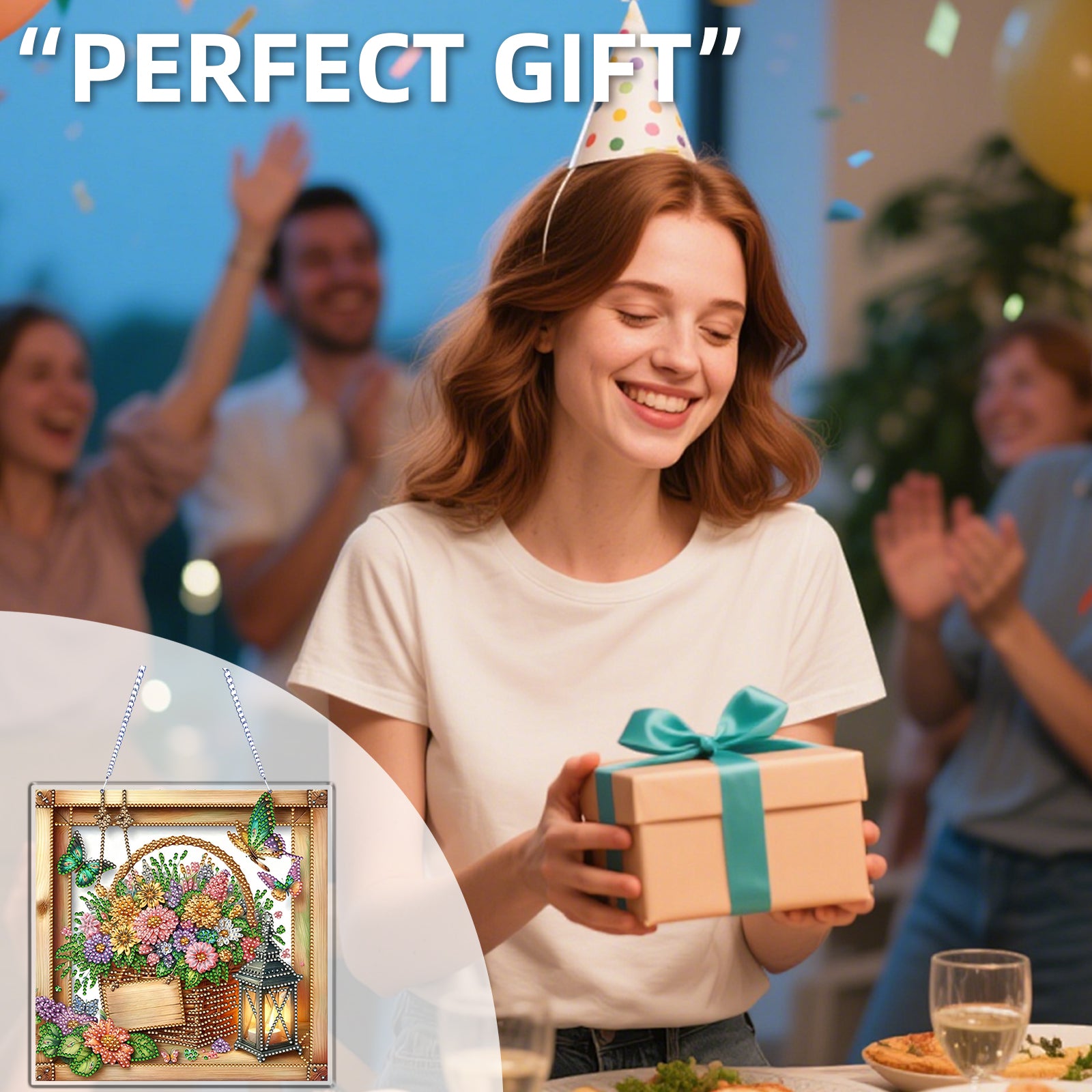 Flower Pot 2D Flat DIY Acrylic Diamond Art Pendant Craft Kit for Home Wall Decor