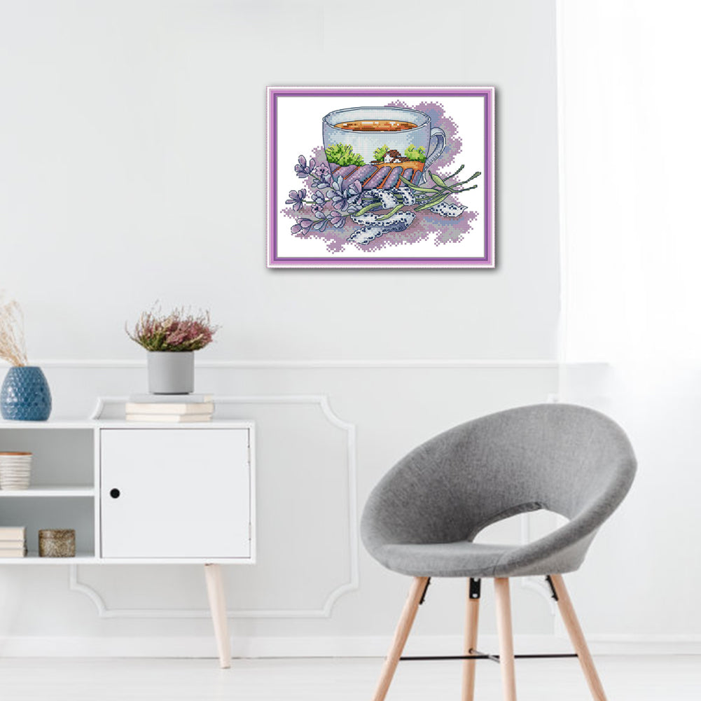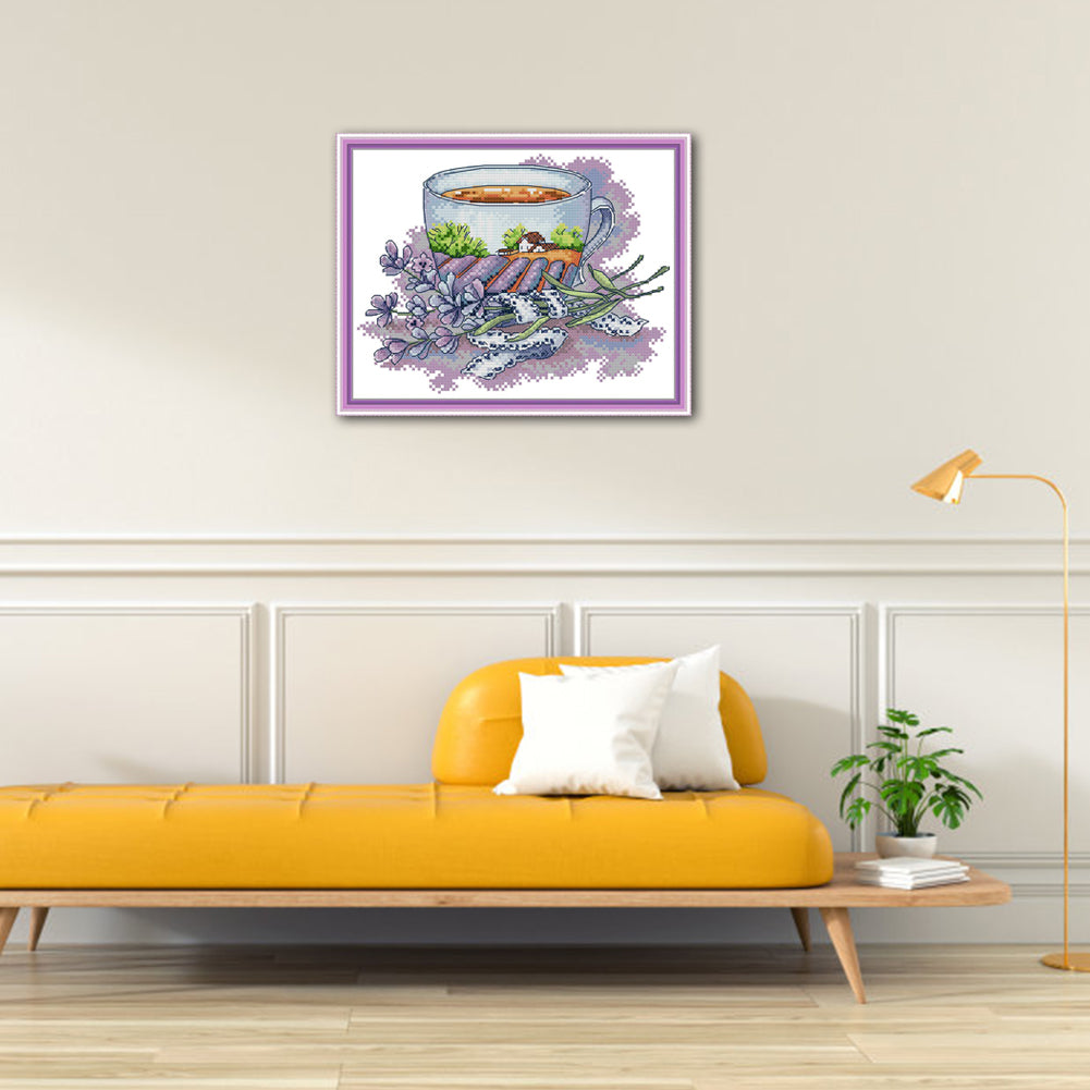 French Teacup - 14CT Stamped Cross Stitch 27*22CM