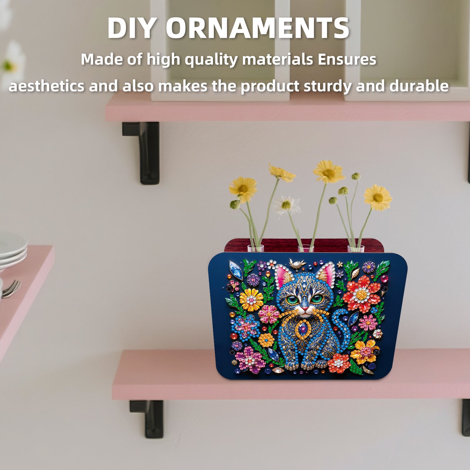 Gem Cat DIY Diamond Painting Wooden Tube Vase for Adults Gift Idea Home Decor