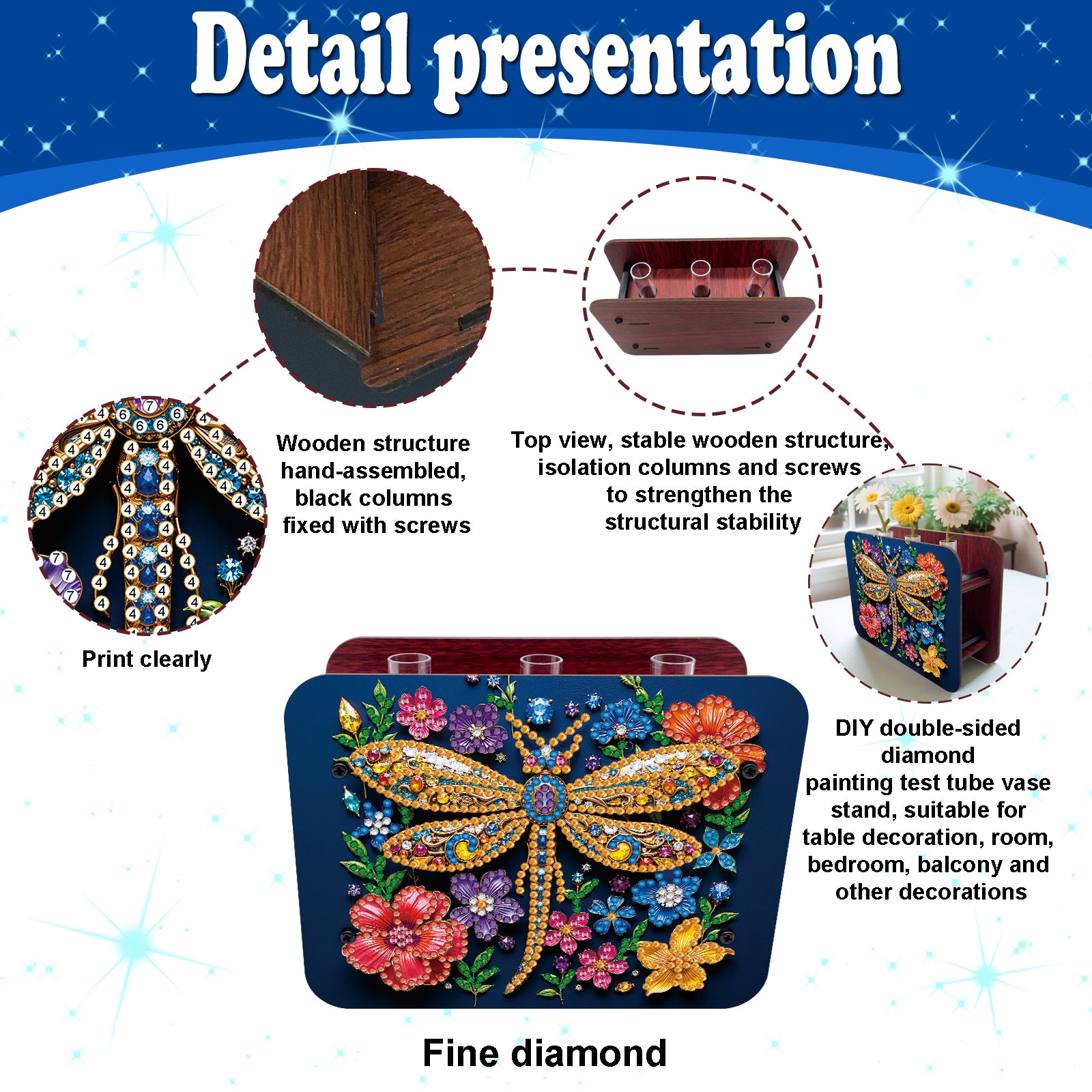 Gem Dragonfly DIY Diamond Painting Wooden Tube Vase for Adults Gift Home Decor