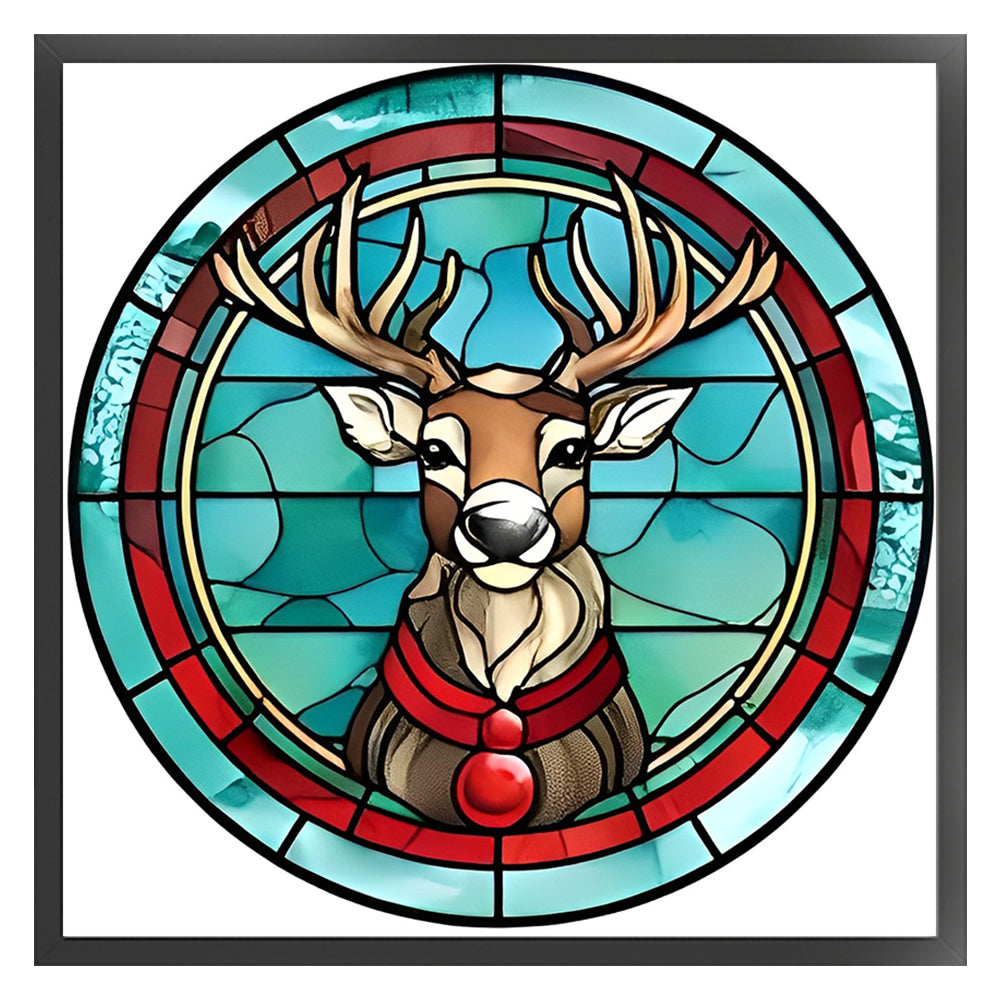 Glass Painting-Christmas Elk - 18CT Stamped Cross Stitch 20*20CM