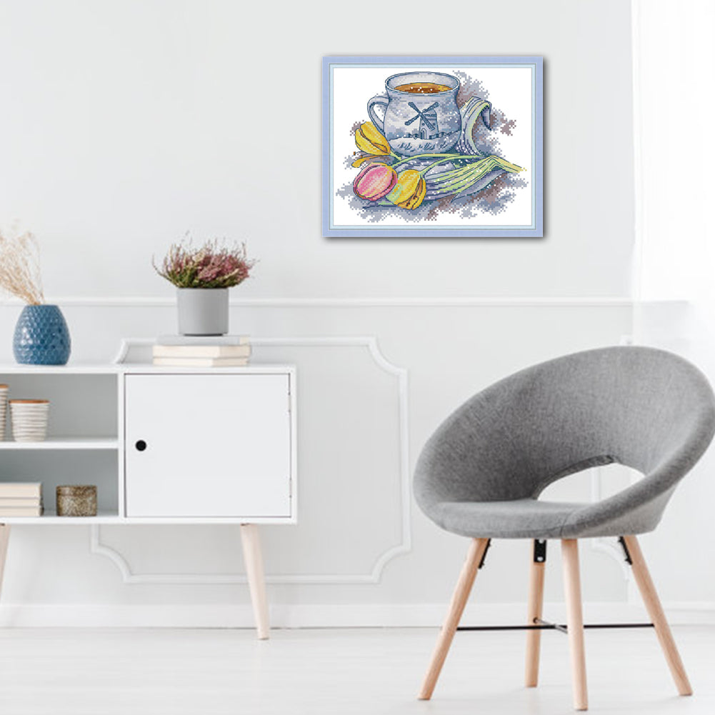 Holland Teacup - 14CT Stamped Cross Stitch 27*21CM