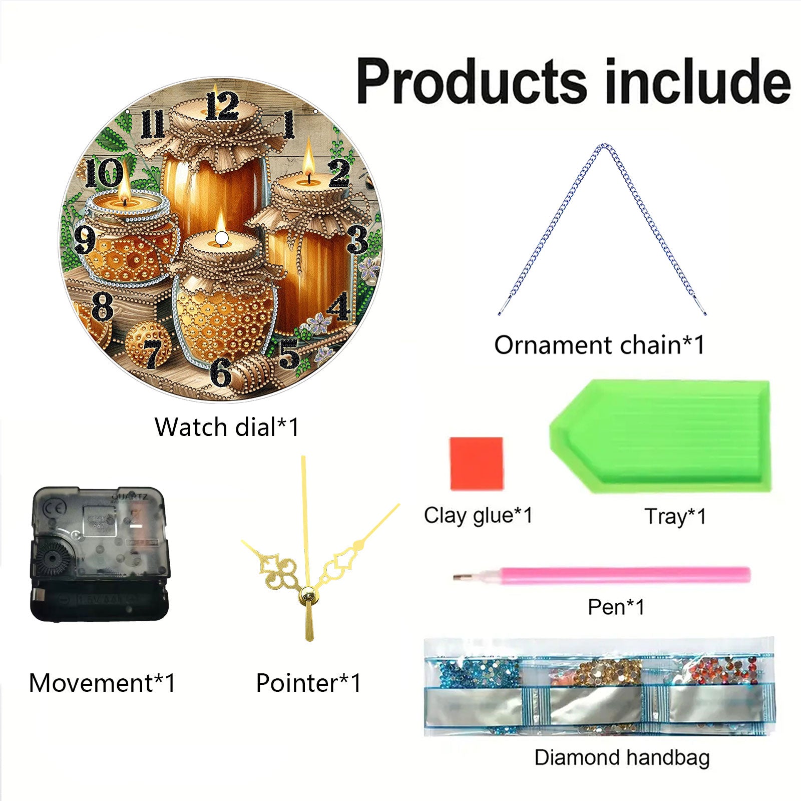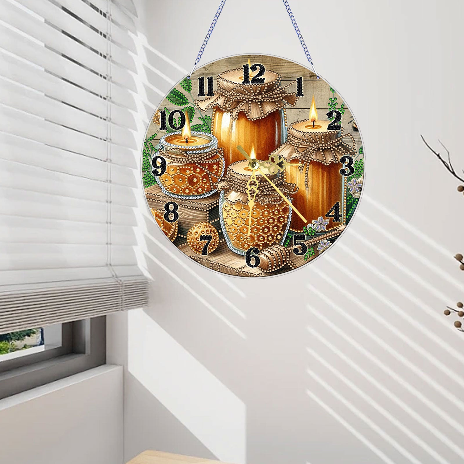 Honey 2D Flat DIY Acrylic Diamonds Painting Clocks for Home Wall or Window Decor