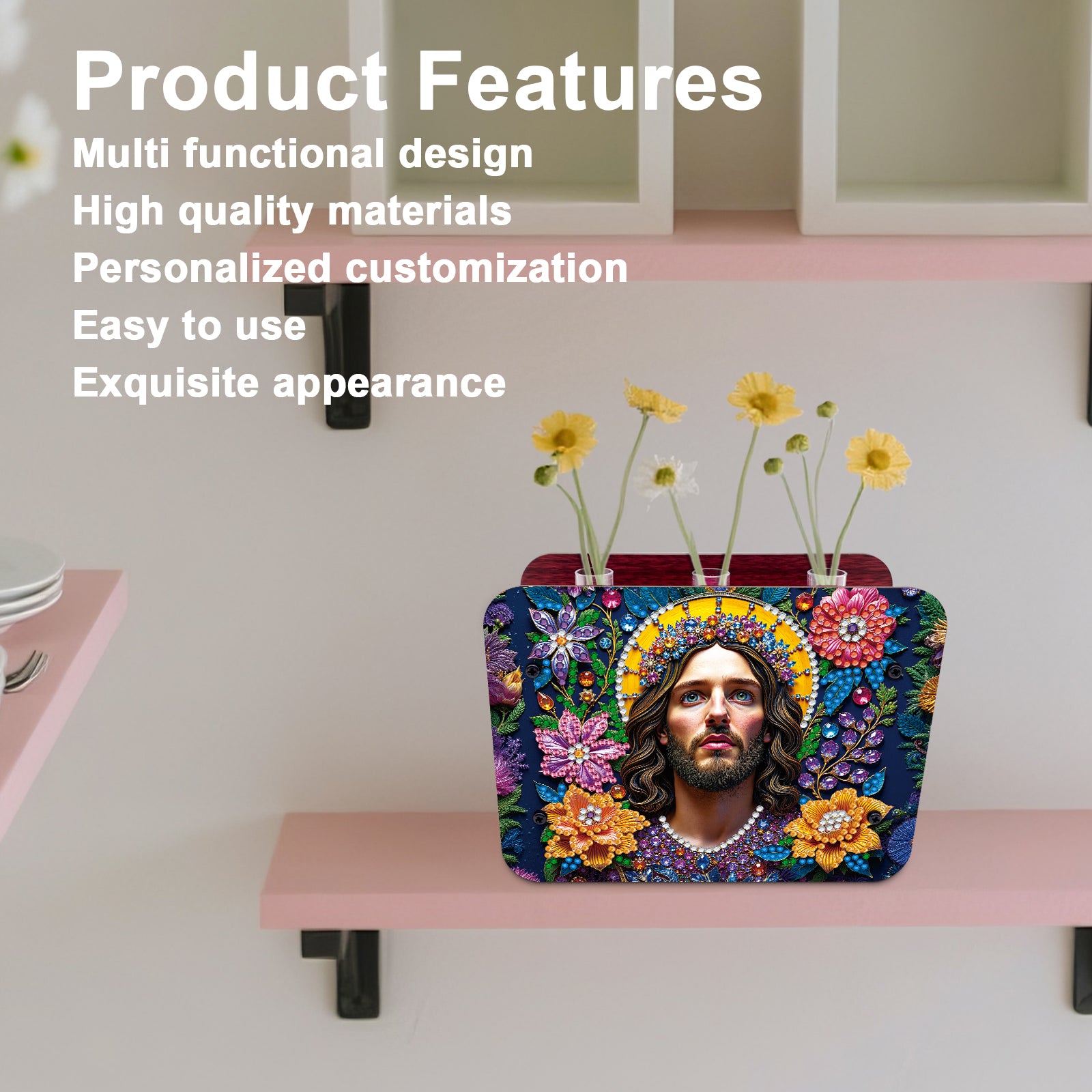 Jesus DIY Flower Vase Wooden Double Sided Desktop Diamond Art Kit for Home Decor