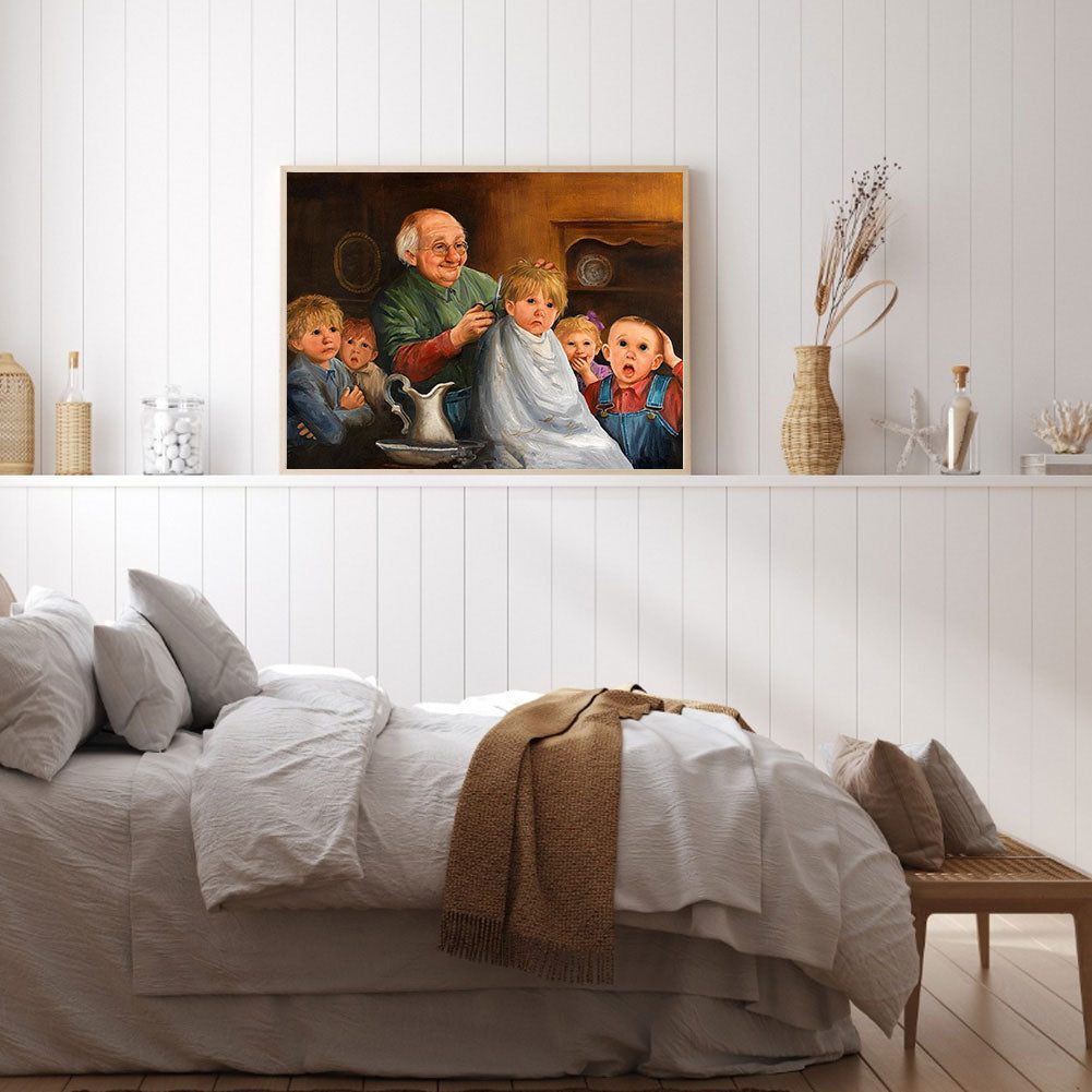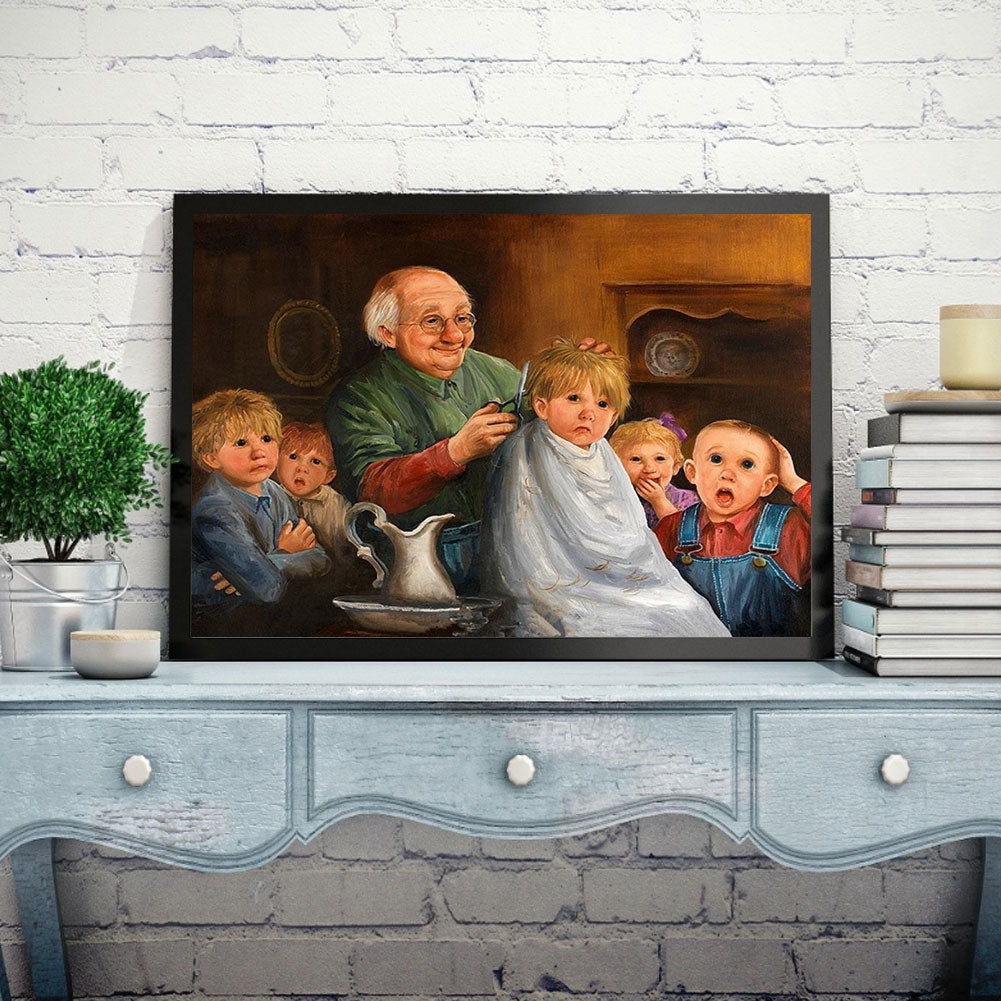 Kid Cutting Hair - Full Round Drill Diamond Painting 40*30CM