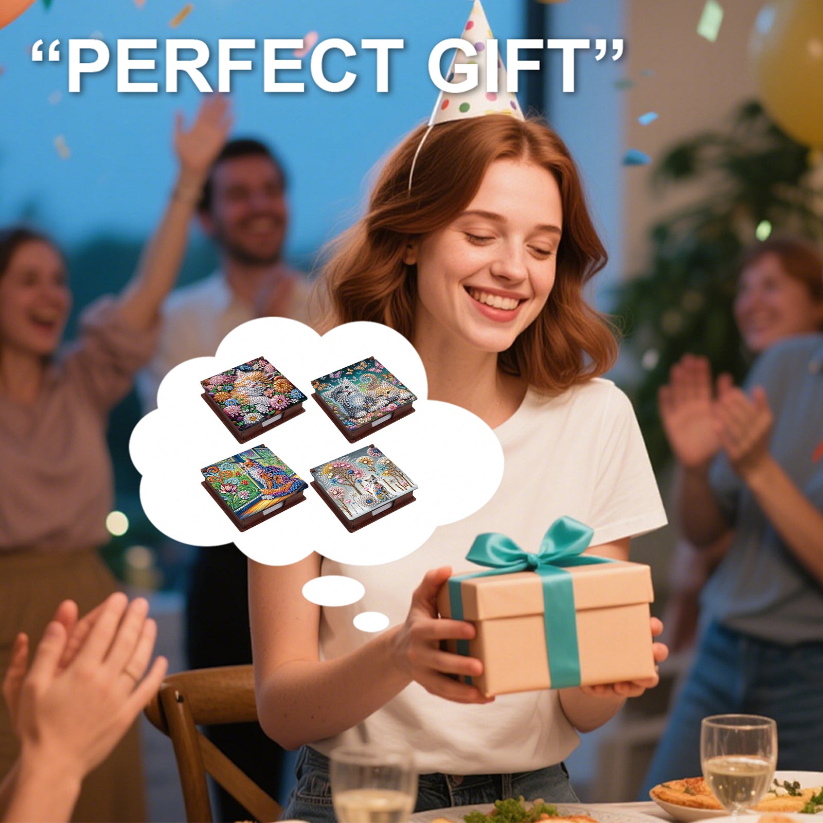 Kitty Wooden DIY 5D Diamond Painting Note Box 640 Notepads Office Home