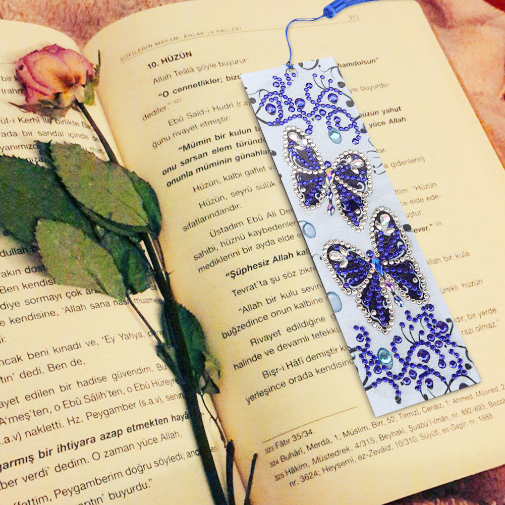 DIY Butterfly Special Shaped Diamond Painting Leather Bookmark with Tassel