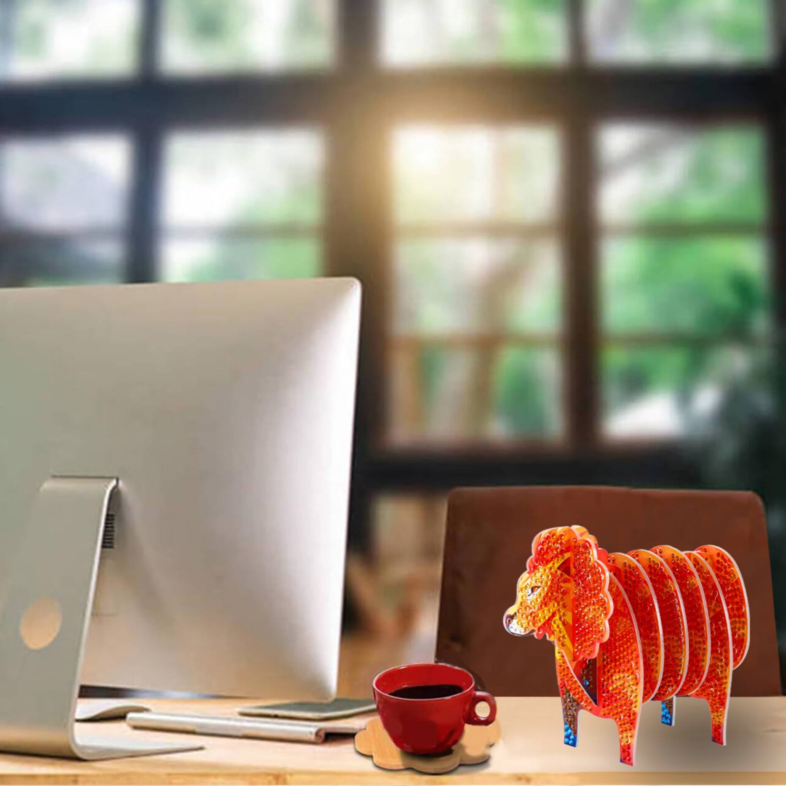 Lion 5D DIY Animal Pattern Diamond Painting Coasters Kits with Holder for Home