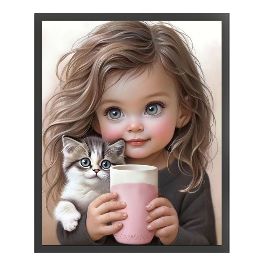 Little Girl And Kitten - 11CT Counted Cross Stitch 40*50CM