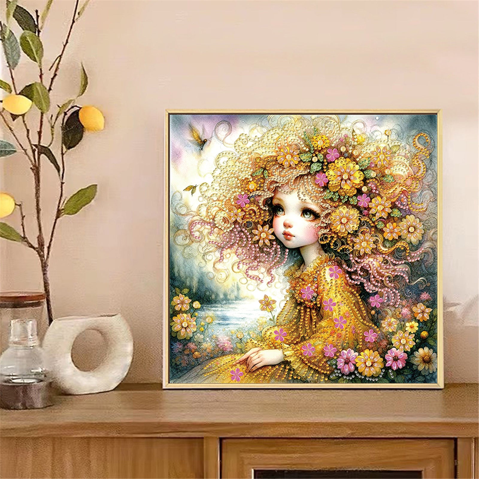 Little Girl With Yellow Flower - Special Shaped Drill Diamond Painting 30*30CM