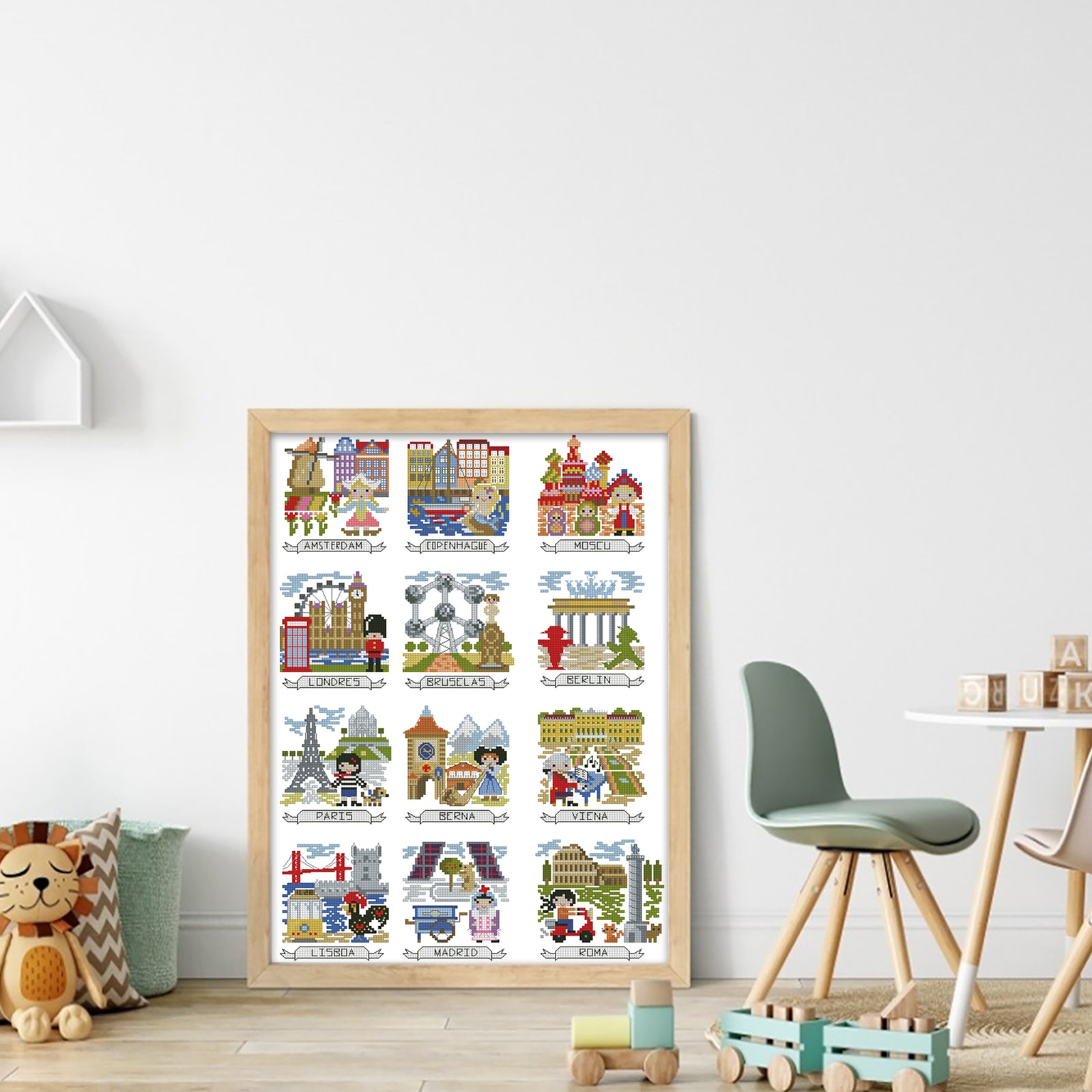 Magazine - Travel Photos Of Various European Countries - 14CT Stamped Cross Stitch 38*52CM (Egyptian cotton)(Xiaobai)