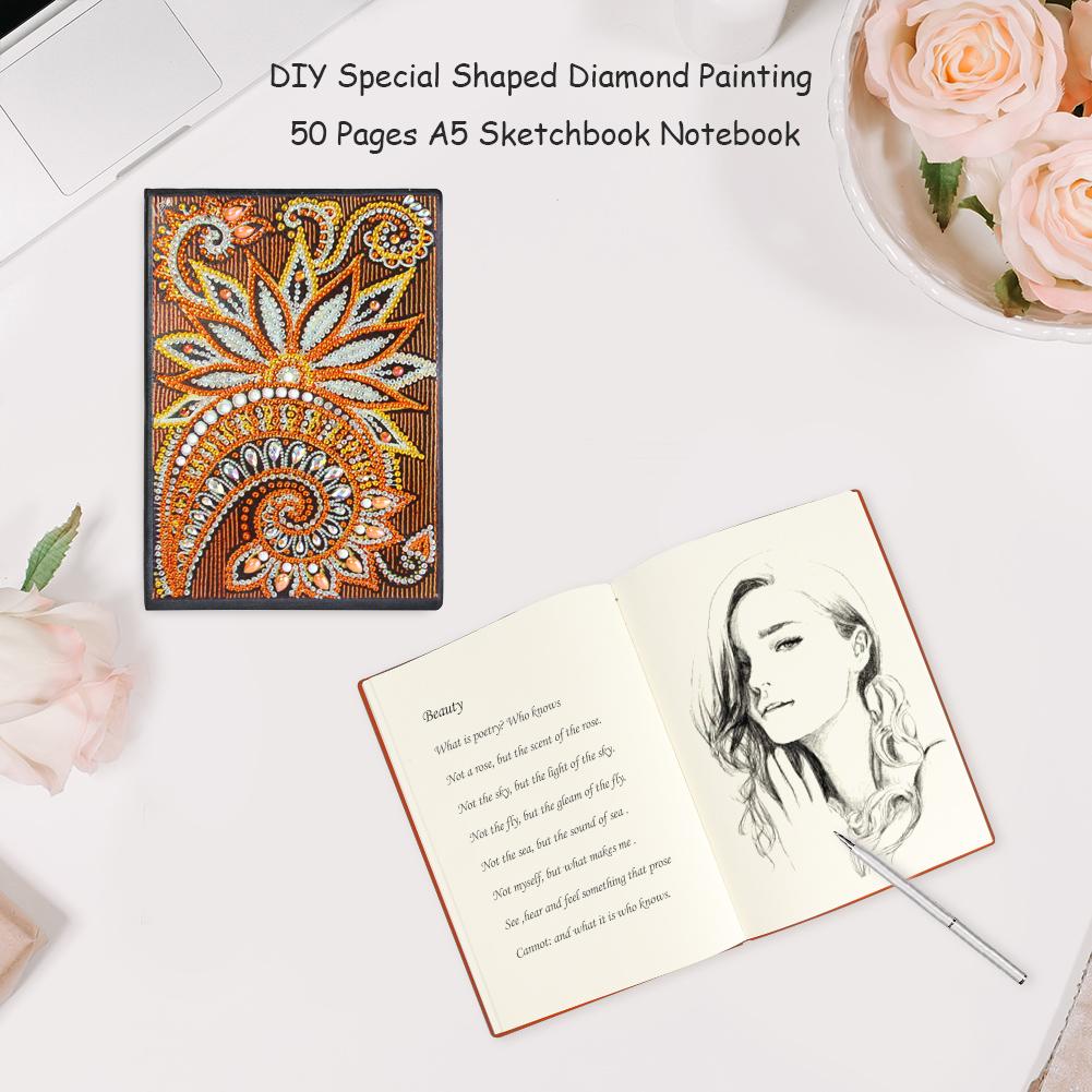 DIY Mandala Special Shaped Diamond Painting 50 Pages A5 Sketchbook Notepad