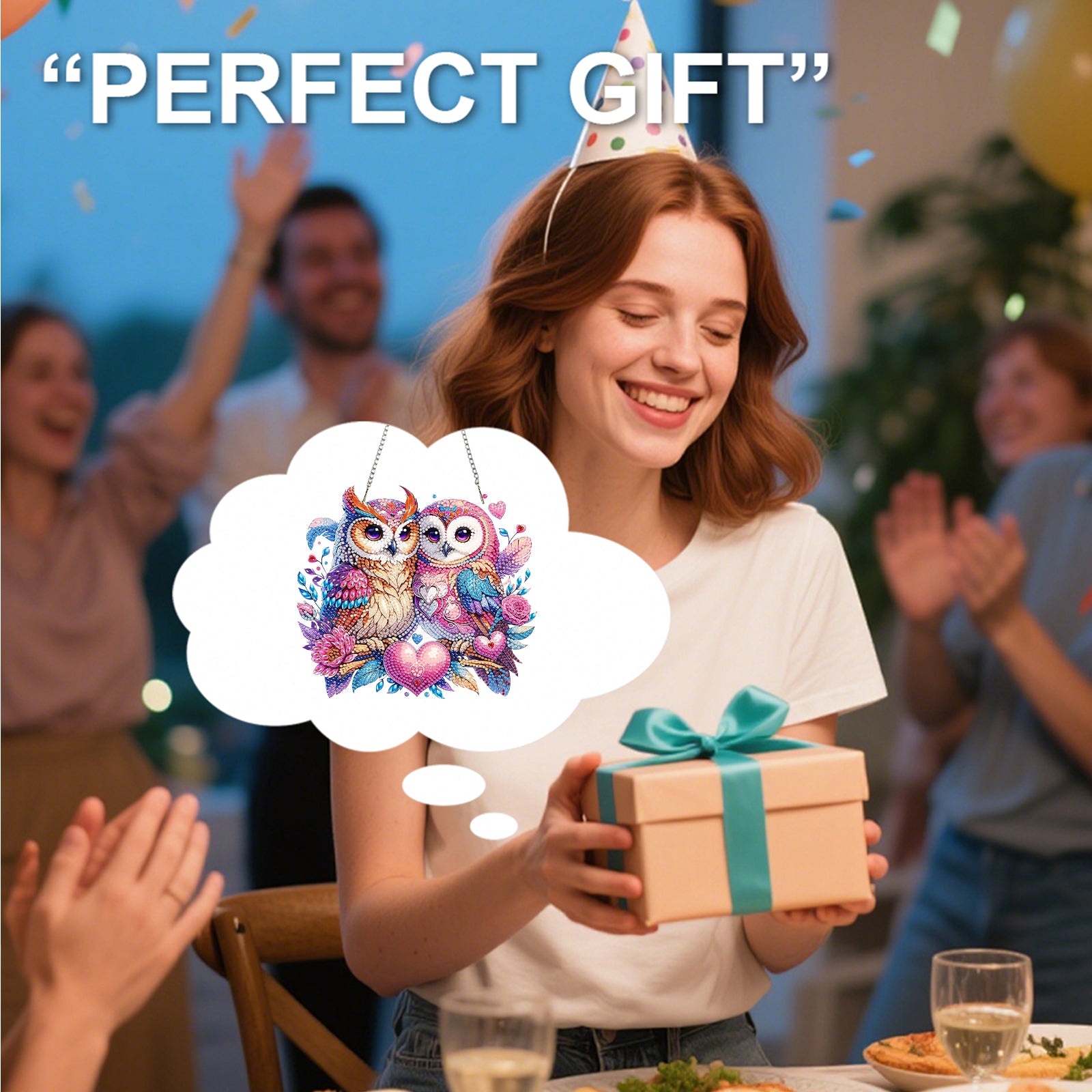 Owl Heart 2D Flat DIY Acrylic Diamond Painting Kits Window Hanging Home Decor