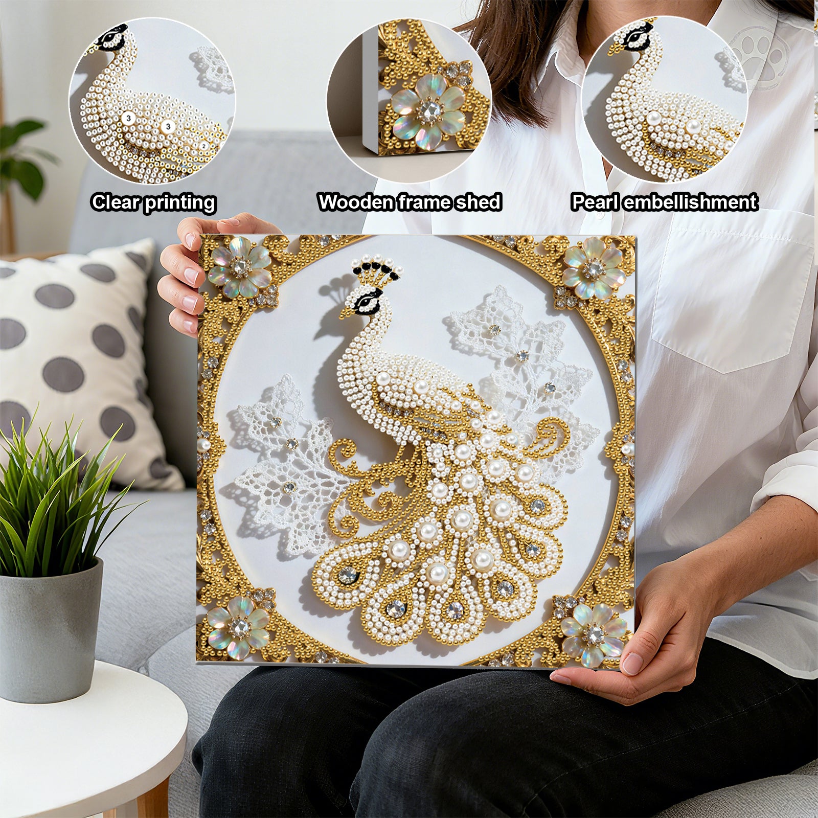 Peacock - DIY Pearl Gem Art Diamond Painting Kits With Framefor Home Decor -25x25cm