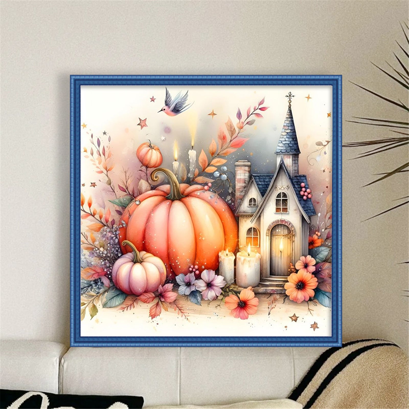 Pumpkin And Castle - 11CT Stamped Cross Stitch 40*40CM