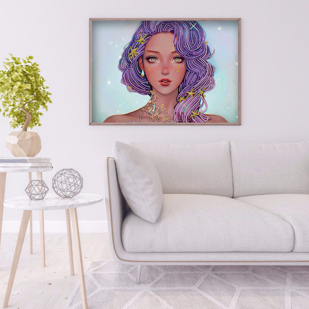 DIY 5D Mosaic Part Drill Special Shape Purple Hair Girl Diamond Resin Painting Kit Rhinestone Drawing Home Art Craft Bedroom Decor