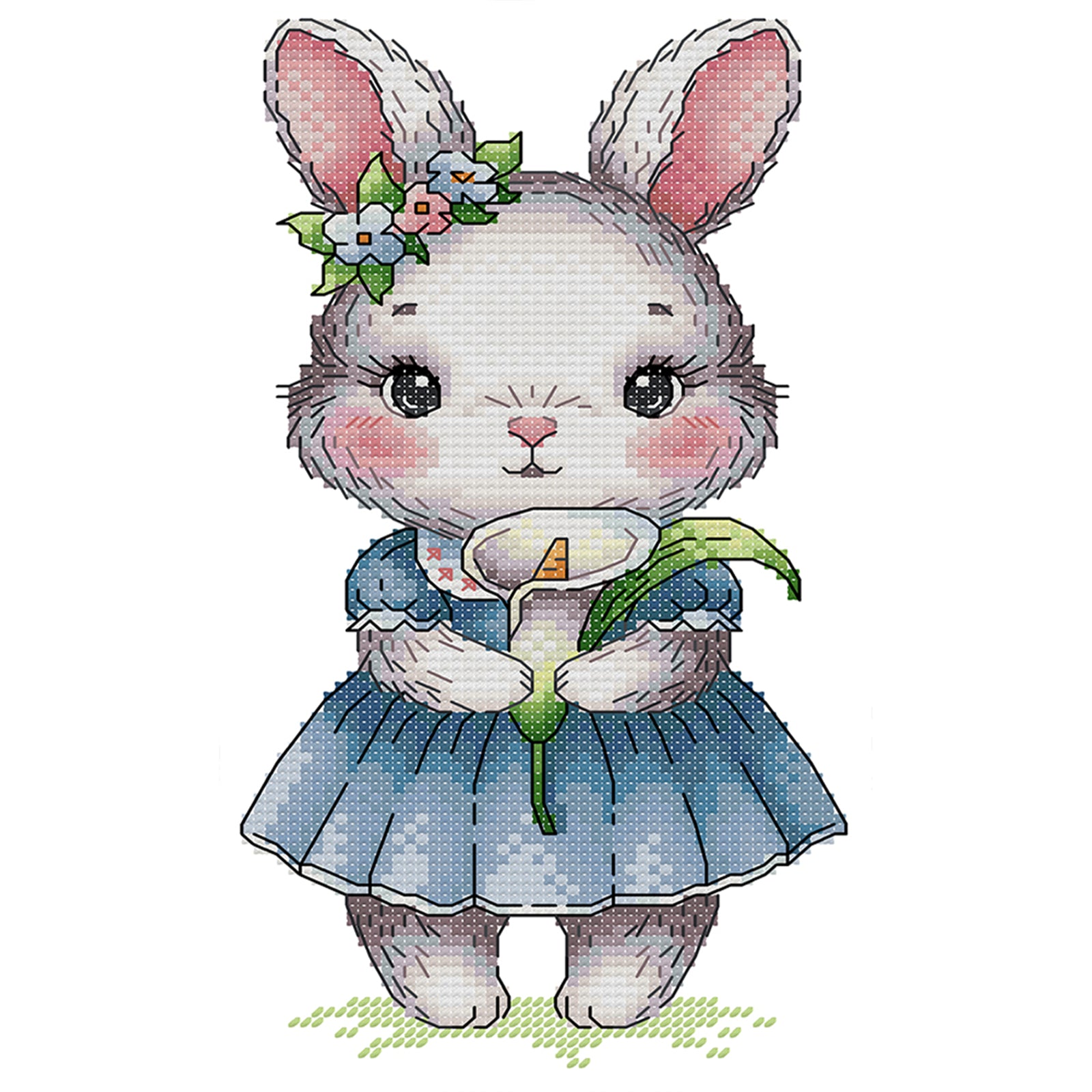 Rabbit And Calla Lily - 14CT Stamped Cross Stitch 15*27CM (Joy Sunday)