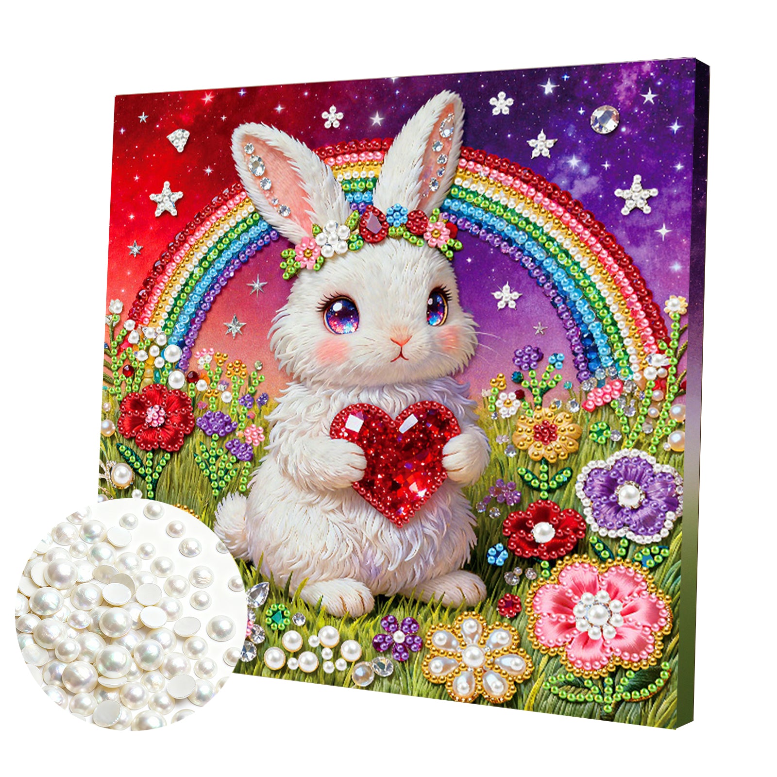 Rabbit - DIY Pearl Gem Art Diamond Painting Kits With Framefor Home Decor -25x25cm