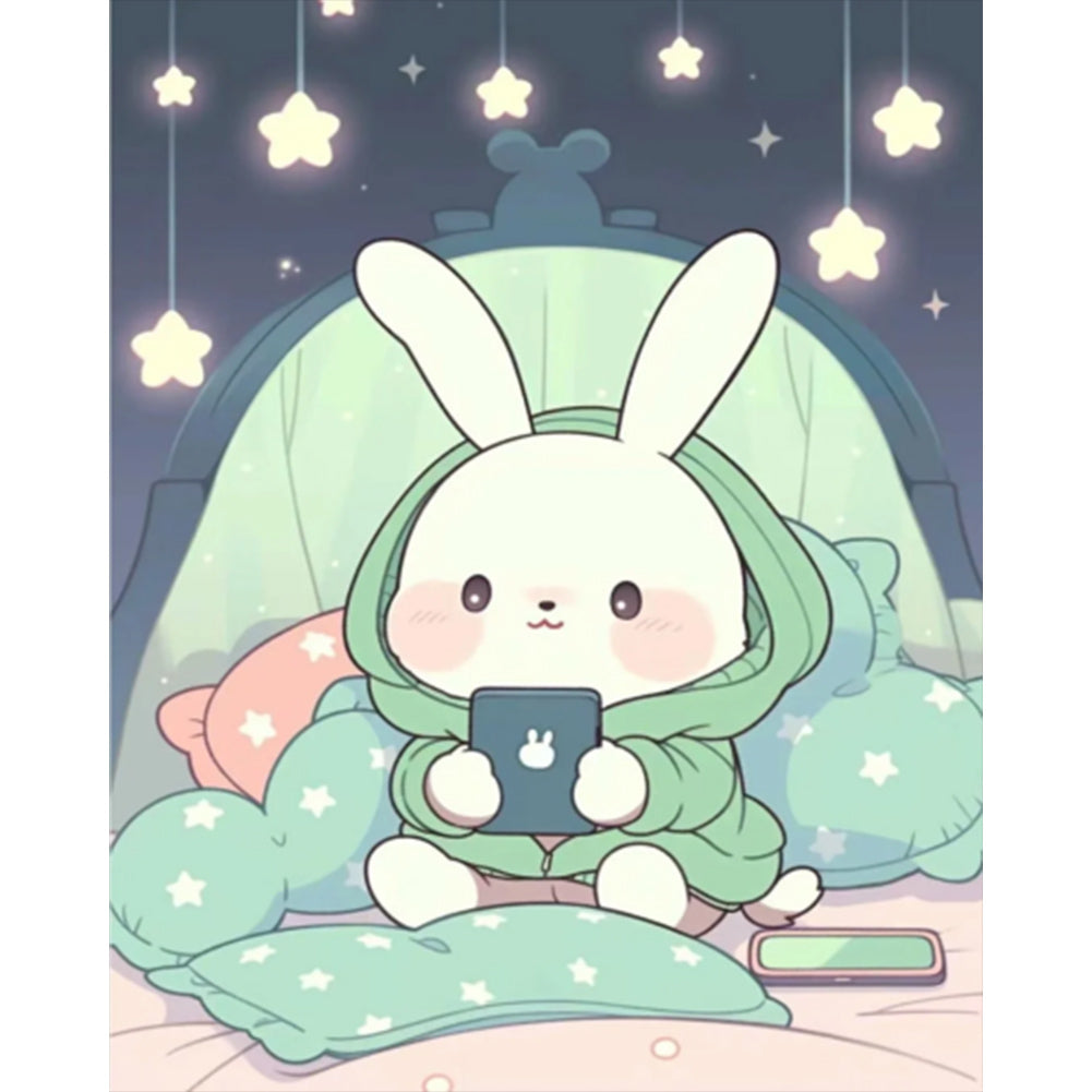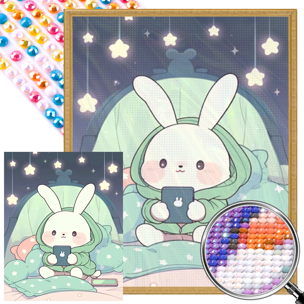 Rabbit Playing With Mobile Phone - Full AB Round Drill Diamond Painting 40*50CM