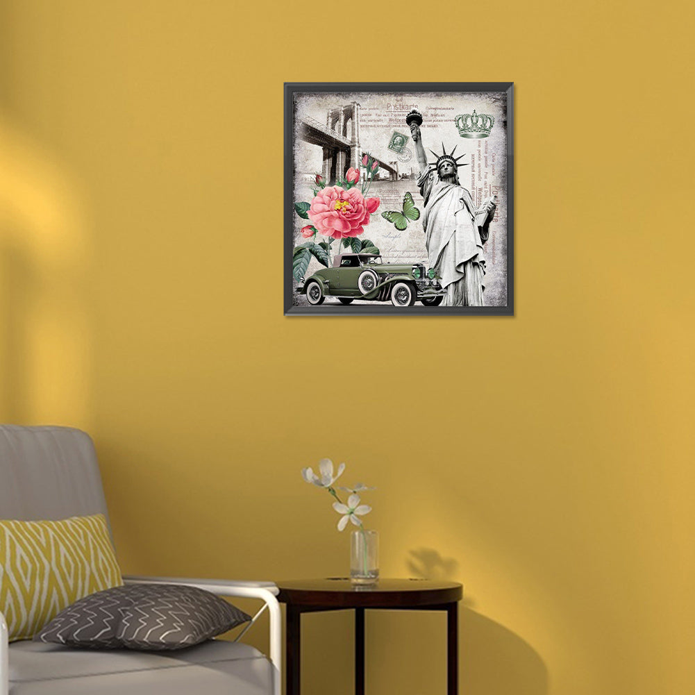 Retro Cars And Characteristic Buildings - Full Round Drill Diamond Painting 30*30CM