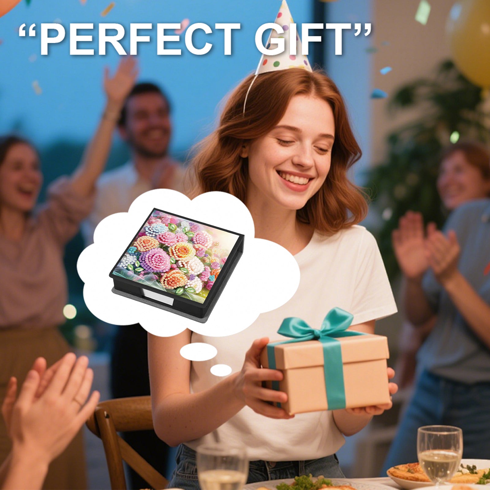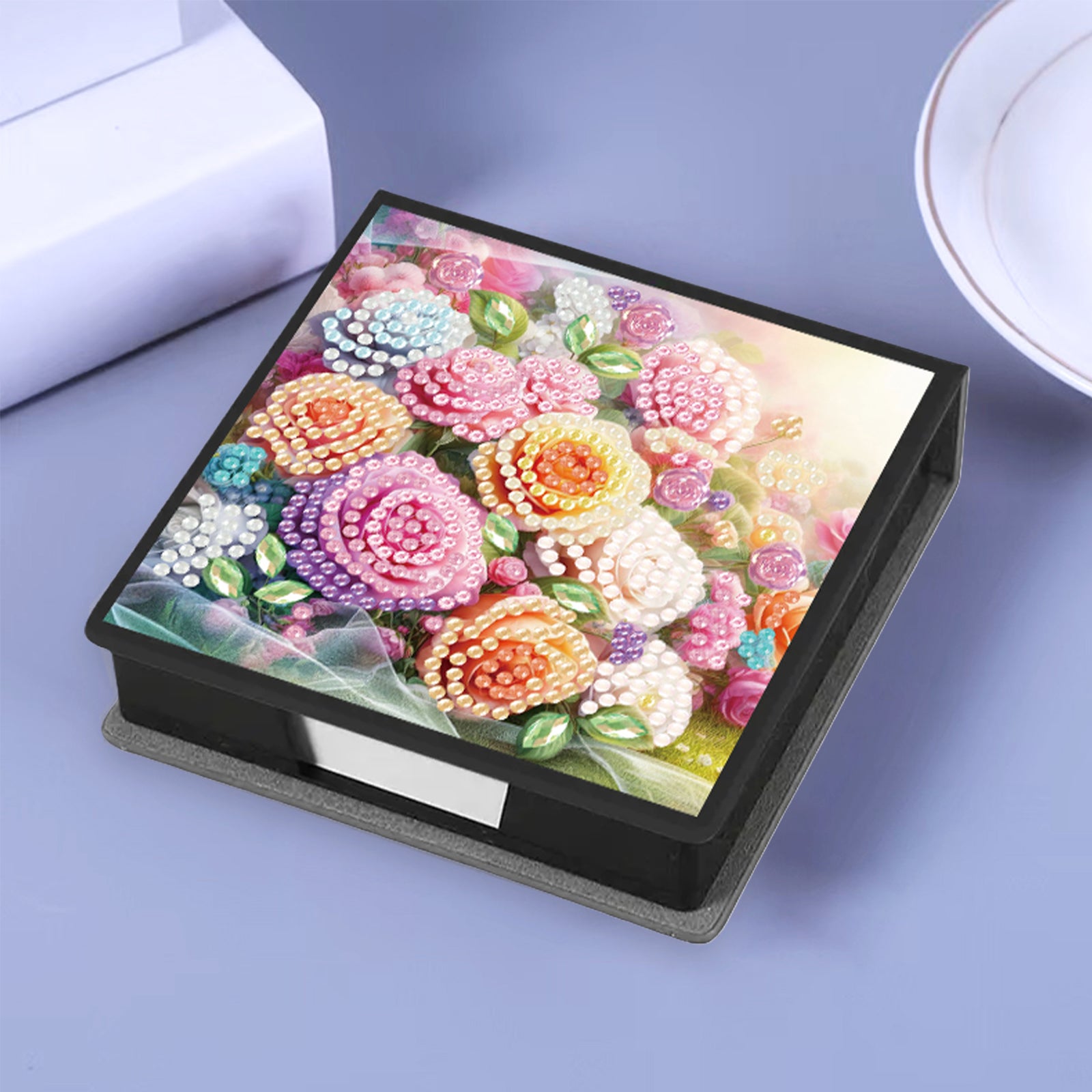 Rose PU DIY 5D Diamond Painting Note Box w/160 Sheets for Office Home School