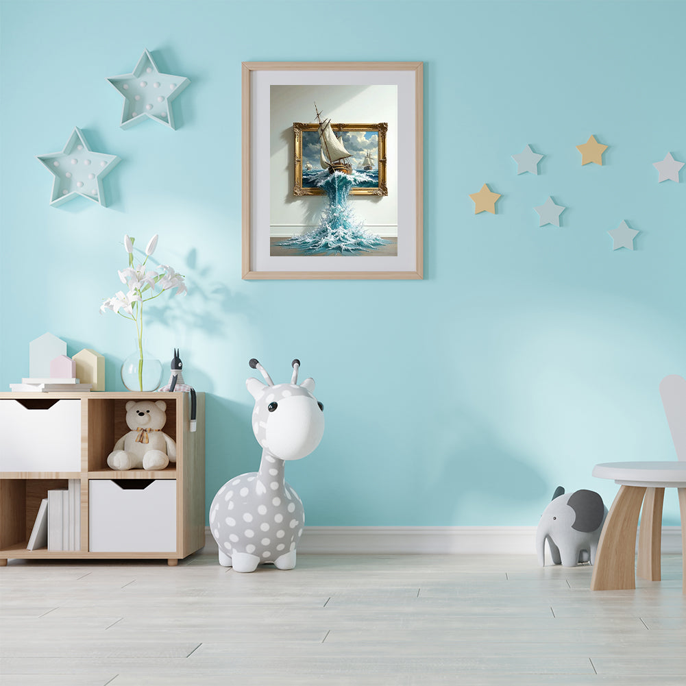 Sailboat In Painting - Full Round Drill Diamond Painting 50*40CM