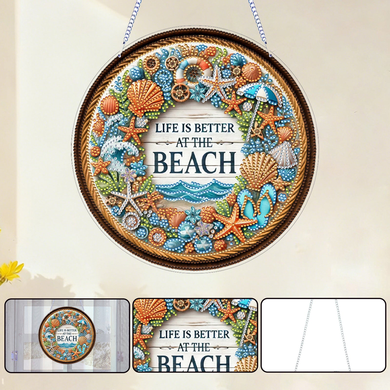 Seashell 2D Flat DIY Diamond Art Pendant for Adults Gift Home Window Wall Decor