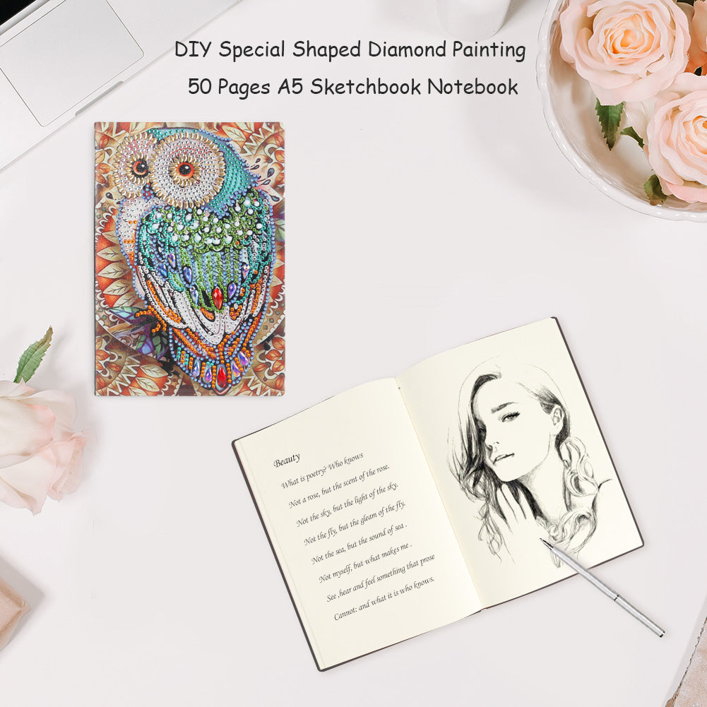 DIY Owl Special Shaped Diamond Painting 50 Pages A5 Notebook Sketchbook