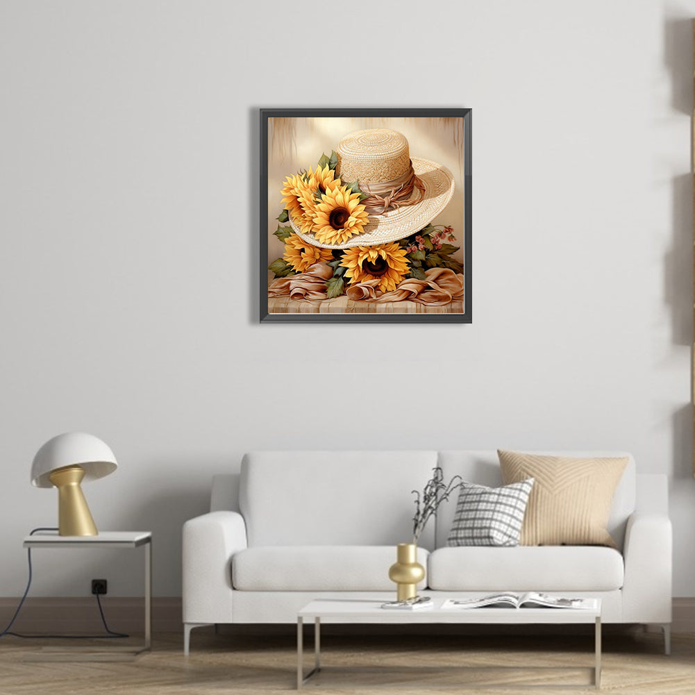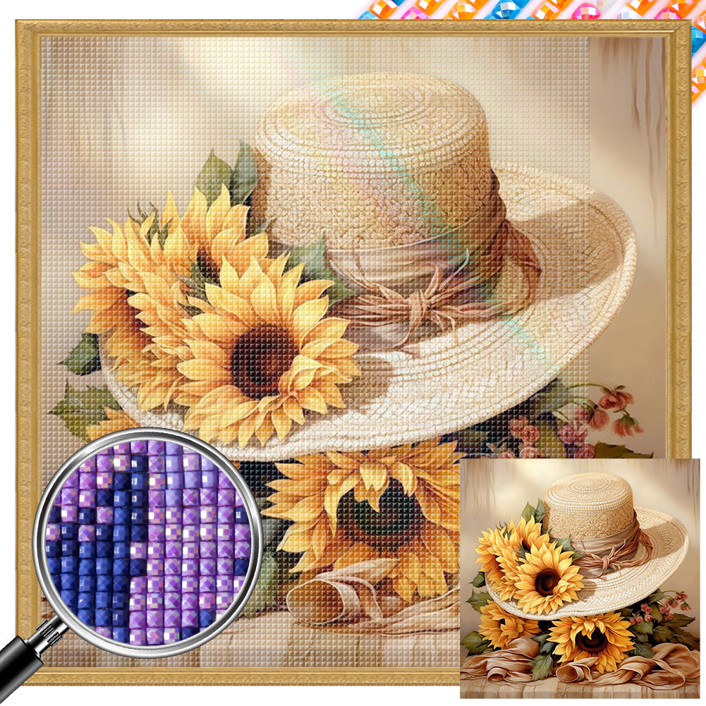 Sunflower And Straw Hat - Full AB Square Drill Diamond Painting 40*40CM
