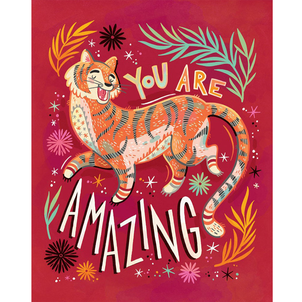 Tiger Calligraphy And Painting - Full Round Drill Diamond Painting 40*50CM