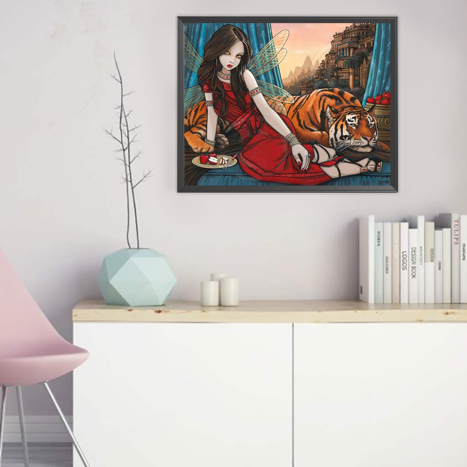 Tiger Girl - Partial AB Round Drill Diamond Painting 50*40CM
