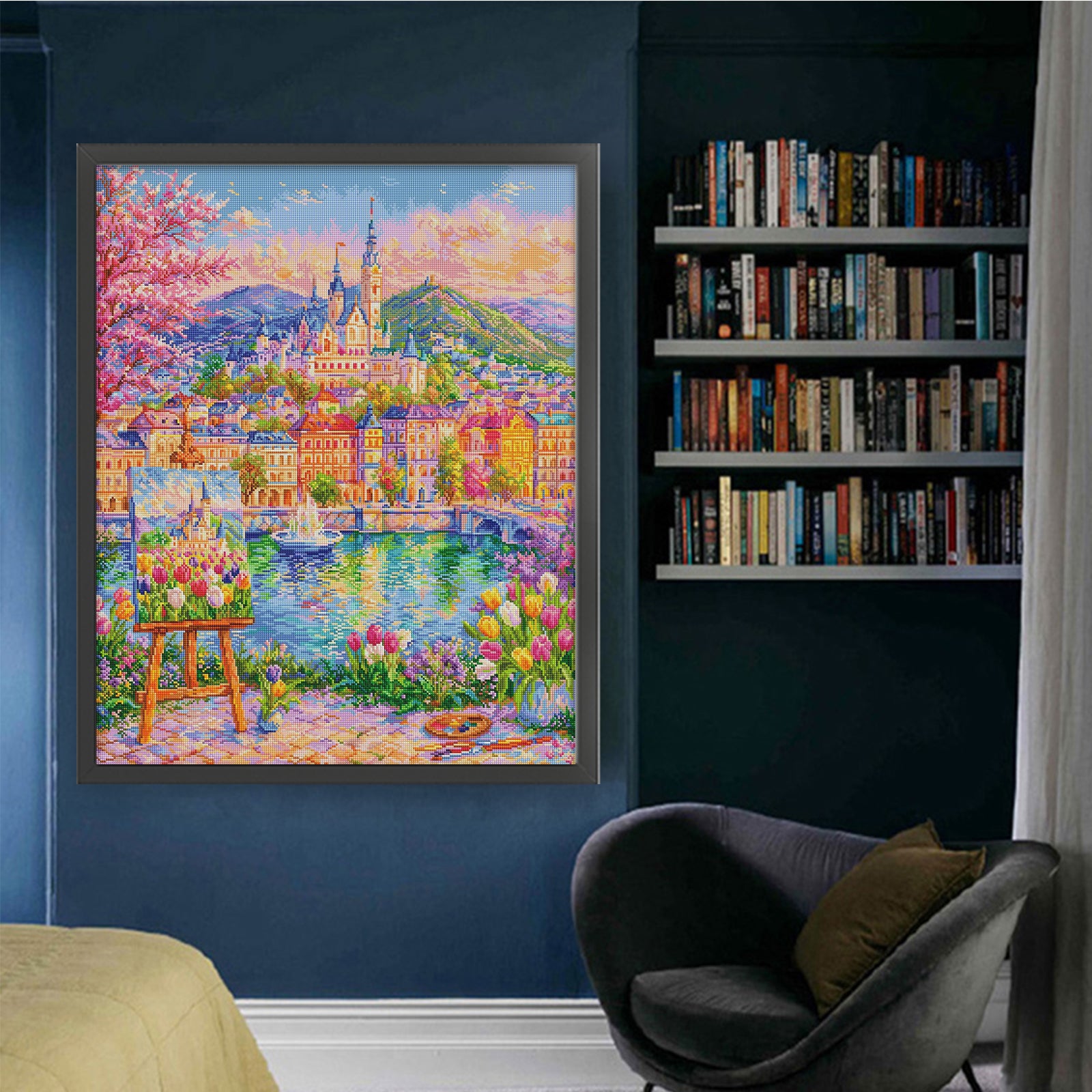 Tulip Castle - 9CT Stamped Cross Stitch 100*80CM(Jun He Brand)