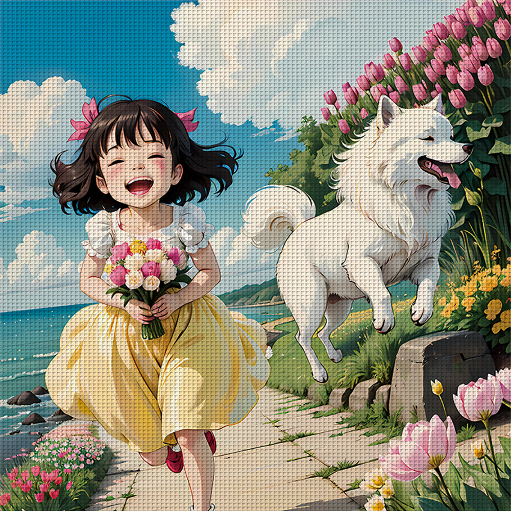 Tulip Girl - 11CT Stamped Cross Stitch 50*50CM