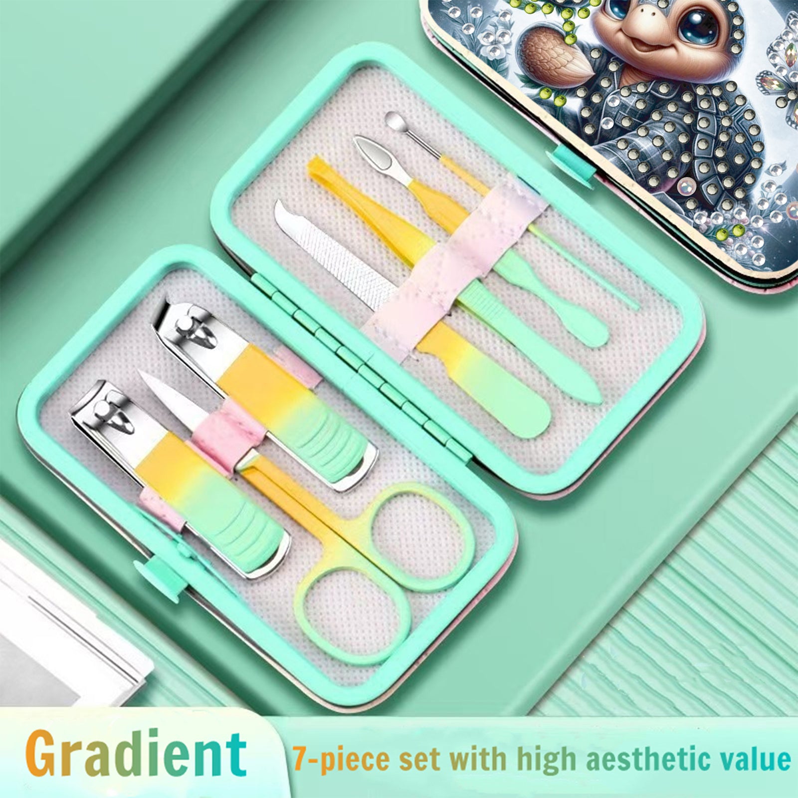 Turtle Theme Diamond Painting Nail Art Bag Set Includes 7 Professional Tools