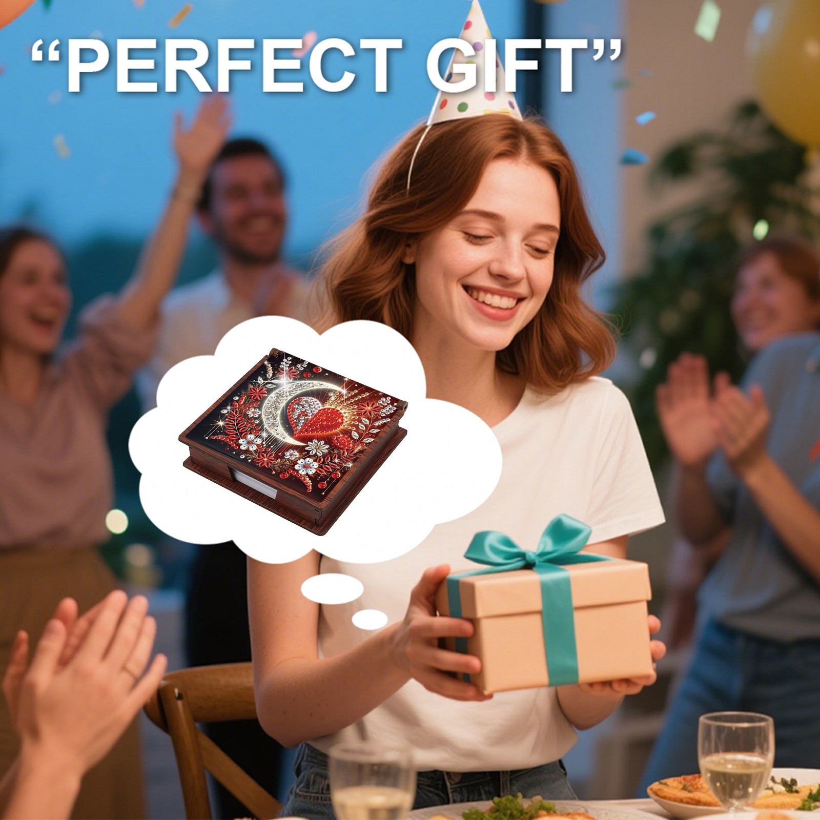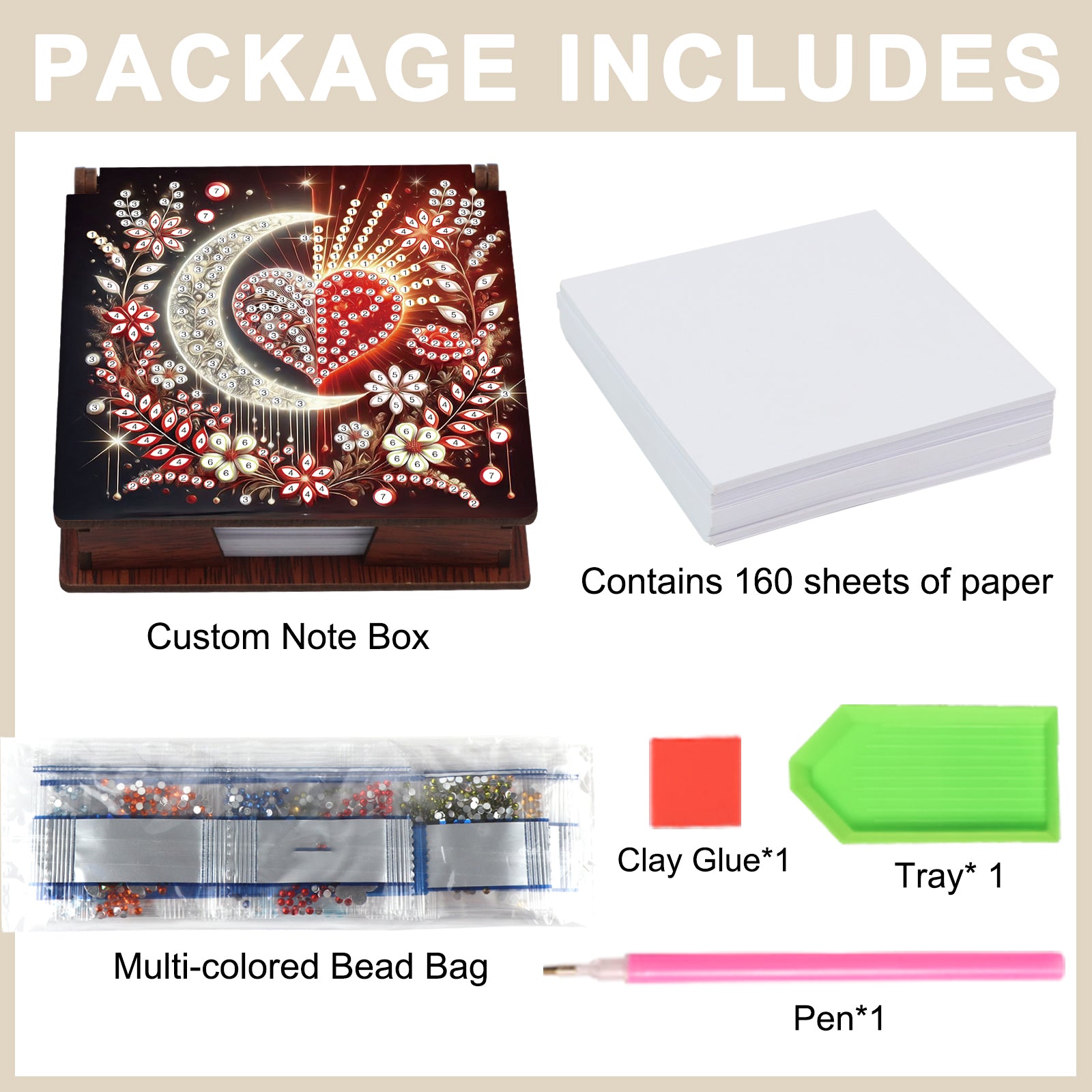 Wooden DIY Moon Heart Diamond Painting Kit Note Box with 160 Papers for Office