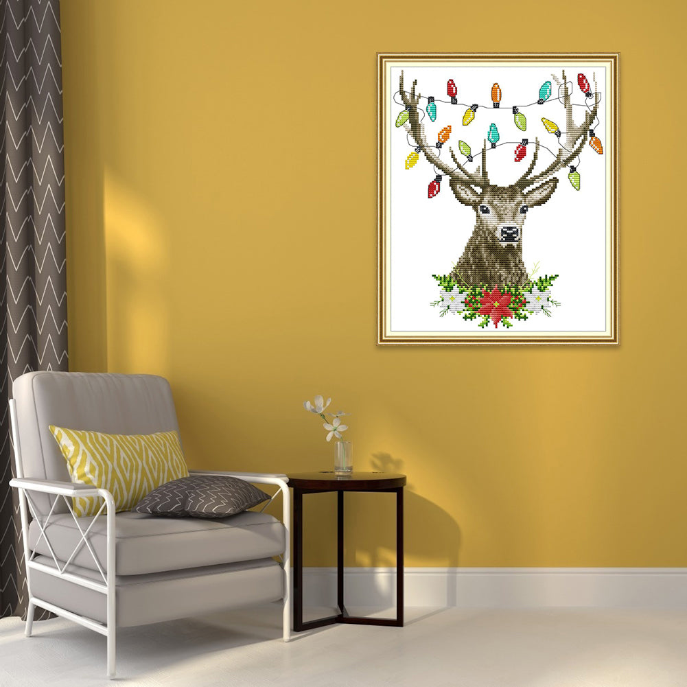 Xmas Antlers - 14CT Stamped Cross Stitch 27*32CM